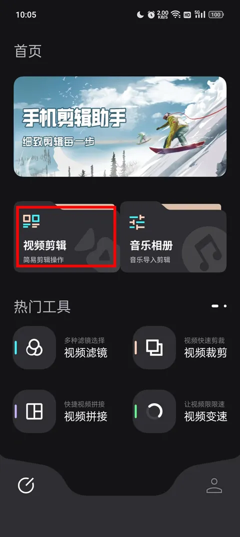 1、在本站下载安装必美相机2024最新版之后,来到软件首页,首页中有两大功能,分别是视频剪辑和音乐相册;