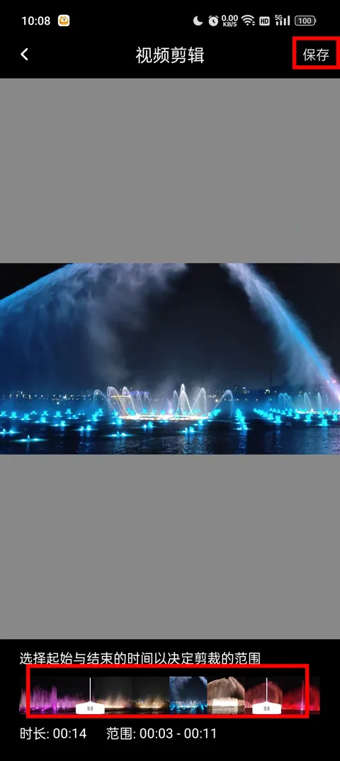 3、然后选择你需要的部分进行,在下方选中你需要的视频部分,然后点击保存即可,这样一个视频就剪辑完成了;