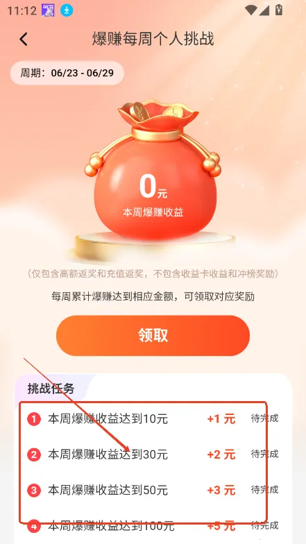 1、进入爆赚游戏界面,点击每周挑战拿奖励