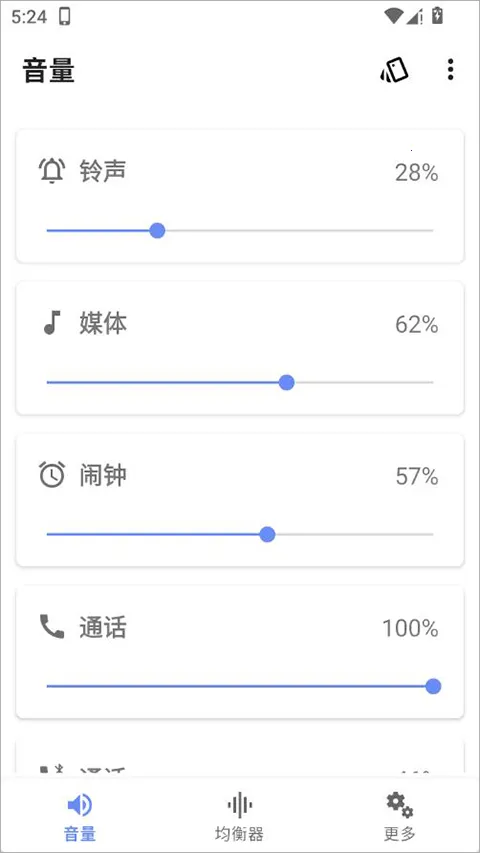 音量君是功能全面的手机音量调节软件,能自由调节铃声、媒体、闹钟音量,有多种调节功能和主题。界面简洁,功能免费,用法简单易上手,不断更新,适配 Android14 系统,修复 BUG 优化体验。