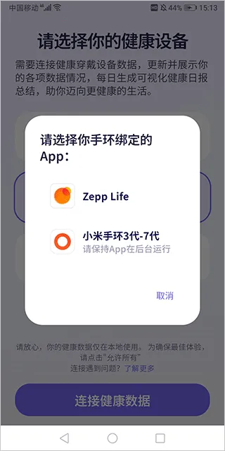 1、微信登录app后即可选择华为手表或小米手环的连接渠道点击