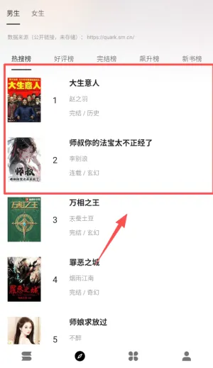 4. 榜单超权威,设有热搜榜、好评榜、完结榜、飙升榜等多个榜单,助你发现最新最受欢迎小说。