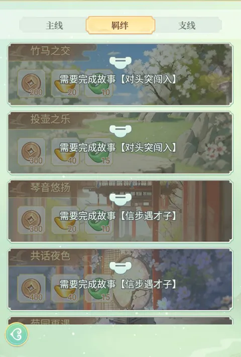 玩家通过选拔、升级宫女、解锁故事羁绊等可以解锁羁绊成就,领取丰富成就奖励。