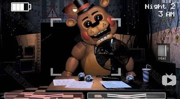 攻略:第一至第二晚没老玩具三人组,第三晚出现,流程上发条后放监控时无论有没有玩具熊,立马戴头套,没有或应对成功后左右通风管名照一次,闪一闪霍斯,然后反复即可。