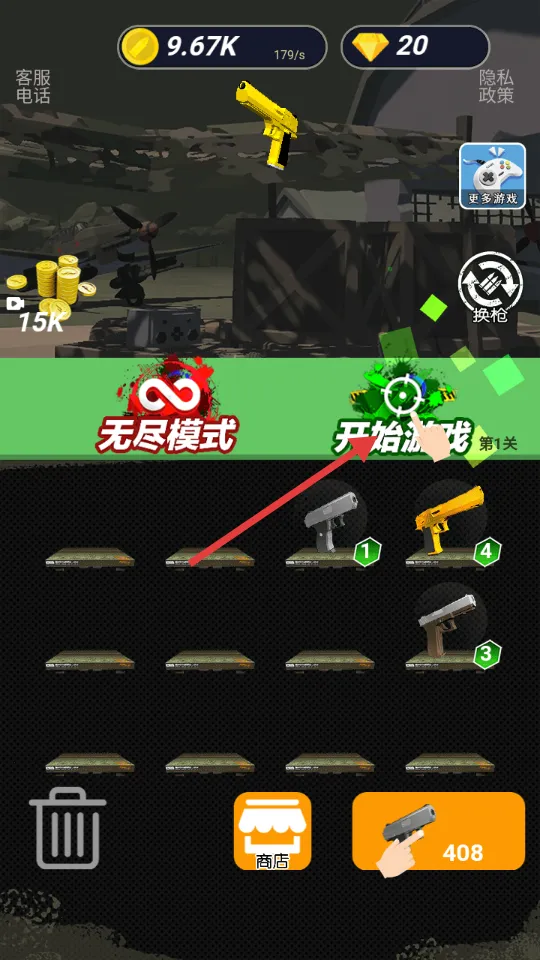 2. 武器合成升级:可合并相同枪支合成更高级武器提升战斗力,升级武器库,还有机会解锁更多收藏空间里的武器。